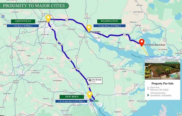 Est $980/moGreat 3.35-acre waterfront lot available on Jordans Creek. No restrictions here, so campers or mobile homes are welcome. This property is located just off of Pamlico Beach Rd, past Winsteadville on the left. There is a deeded easement down Flynn Ave. The area is very private and secluded, making it the perfect place for weekend getaways or a permanent residence. Jordans Creek offers great fishing, crabbing, water sports, and quick access to the Pungo River and Pamlico Sound, with good waterfowl and other hunting opportunities in this area. The property is just a few minutes from Belhaven and Bath, and just 30 minutes from Washington. Come check out this hidden gem today!