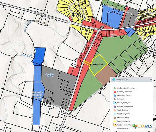 Prime 24+/- acre development opportunity located within the city limits of Gatesville, Texas, featuring paved frontage along Texas FM 116 with excellent visibility, access, and scalability. This tract is ideally positioned for residential development, with city utilities available and full annexation already completed-streamlining the entitlement and development process. The property currently maintains an AG exemption, offering reduced holding costs during planning and development phases. Its strategic location near Fort Hood-one of the largest military installations in the United States-drives consistent demand for housing, logistics, medical, and defense-related services. Gatesville continues to see steady growth, supported by its proximity to major Central Texas markets including Waco, Temple, and Killeen, with convenient access to Austin, Dallas-Fort Worth, and Houston. The area also benefits from expanding aerospace and advanced manufacturing activity in the region, including SpaceX operations, contributing to long-term economic stability and job growth. This is a scalable, infrastructure-ready investment opportunity in a high-demand growth corridor. Additional contiguous acreage available. Acreage is approximate and boundary lines are subject to change.