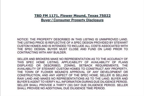 Welcome to an unparalleled opportunity to create a masterpiece of luxury on 5.95 pristine acres with Stewart Custom Homes in the prestigious Flower Mound Cross Timbers Conservation District. This exclusive estate offers an exquisite fusion of sophistication and seclusion, just minutes from DFW Airport, world-class shopping, fine dining, and top-rated Argyle ISD schools. Designed for the most discerning buyer, this future residence will be a triumph of architectural elegance, featuring five private guest suites--including two on each level--a lavish owner's retreat with a secluded porch, a breathtaking central courtyard, and impeccably appointed media and game rooms on both floors. Every detail is curated for grandeur, including a private study, a fortified storm room, and seamless indoor-outdoor living spaces. The estate's outdoor oasis will redefine luxury entertaining with a custom-designed pool, multiple patios, an outdoor fireplace, a chef's kitchen, and a pavilion, all surrounded by lush, park-like grounds. With no HOA restrictions, the possibilities are limitless--whether you desire a grand equestrian estate, a private resort-style sanctuary, or an exquisite custom workshop. Bordering heavily wooded Grapevine Lake Corp land, this estate offers rare tranquility with breathtaking natural beauty and abundant wildlife, all within moments of the North Shores of Grapevine Lake. Need more room? There is an additional 11+ acres available, see mls #20844594 for the 5.95 lot! Opportunities of this caliber are increasingly rare in Flower Mound--secure this prestigious estate and bring your vision of ultimate luxury to life.