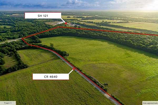 From Trenton, north on 121, turn right on FM 4640. Tract 1 sits at corner of 121 and 4640. Entry on 4640 mid-way down on left. Look for Sign.