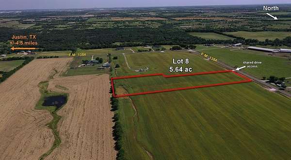 Est $3,098/moLot outside the city limits of Justin, TX. Enjoy the country with the convenience to the city just minutes away! The lot is located within Northwest ISD and there is no H.O.A., but deed restrictions are in place and are attached. Electric available at the road. Construction has finished on the shared-driveways for this lot fronting FM 1384. Please do not hesitate to reach out with any questions regarding this lot