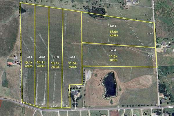 Est $2,012/moAn excellent site for your home and ranching needs, this clean land is ready for you to create your own country experience. This is LOT 2, a 10.1+- acres property on Farm to Market 1722, County Club Rd, in the growing community of Ennis, TX. A gate and culvert from the road are installed on-site. Water and electricity service is available at the road. No floodplain and no known pipeline easements exist on-site. Additional adjoining lots available.