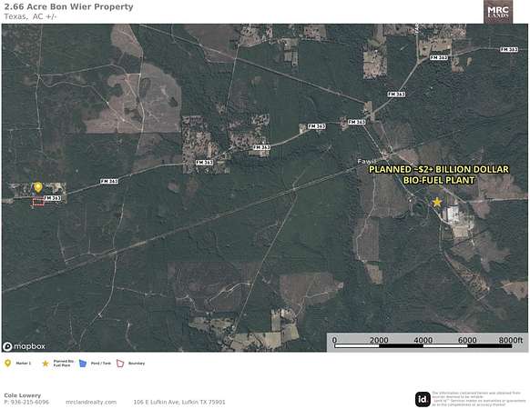 Located just 2.5 miles from the site of the planned $2.8 billion dollar biofuel plant in Bon Wier, TX, this 2.66 acre tract is a golden opportunity for RV park investors and commercial developers looking to capitalize on one of the largest industrial projects in the regions history.