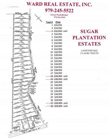 Est $290/moCedar Lane area residential development offers prospective buyers deed restricted acreage that's part of Matagorda County history. Sugar Plantation Estates is a 76-acre subdivision that was once part of the historic Bowie Plantation that was started in the early 1850s. Conveniently located close to Chevron Phillips, Tenaris, STP, Bay City, West Columbia, Brazoria & Lake Jackson. In Van Vleck ISD.