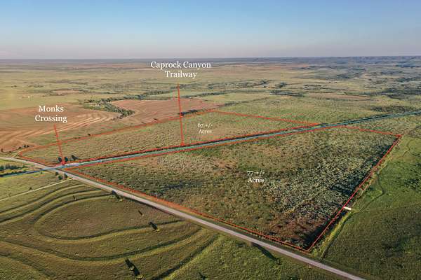 Est $3,740/mo147 Acres | Floyd County, TX | Trailway Investment Located in NE Floyd County, this 147-acre property spans both sides of the Caprock Canyons Trailway. With scenic views and easy access, it's ideal for development or recreation. The 64-mile Trailway-popular for hiking, biking, and horseback riding-cuts through the land. Potential uses include RV sites, camping, glamping, or a trail rest stop. The seller is open to dividing and selling parcels separately. One old water well exists; no other utilities are onsite, though electricity runs along the highway. No active leases. A unique opportunity with trail frontage and high visibility.