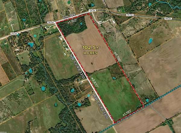 Est $7,550/mo102.5+- acres consisting of pasture and cultivated farm land with road frontage on both FM 744 and NW Co Rd 3310, over 5,000 of road frontage in total. Located only minutes North of Navarro Mills Lake, this land is an attractive opportunity to create your own family retreat, or farm and ranch with multiple potential home sites. Electricity is available at the road. There is currently no metered water service available, however it is planned to be available from Navarro Mills WSC in late 2027. A new boundary survey is scheduled for delivery by the end of December. Come see the potential this beautiful property has to offer.
