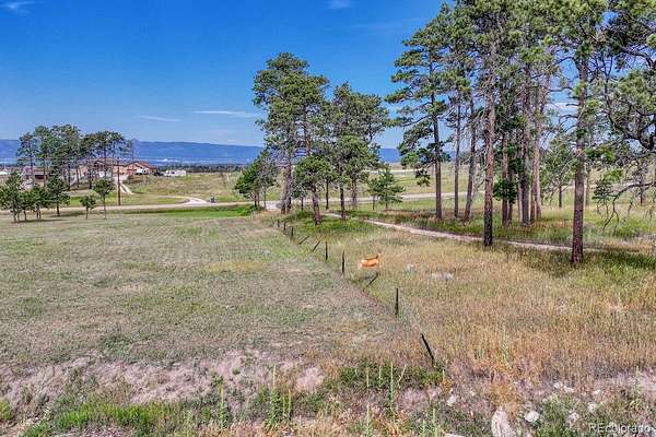 Over 12 acres treed and meadow and jaw dropping, phenomenal Pikes Peak and mountain views located in sought after and close-in south Black Forest. Gorgeous mature Ponderosa Pines and lush green meadows. Fiber optic internet is available. Close proximity to Award winning School District 20. No covenants or HOA. Horses, outbuildings, chickens and other animals are allowed. Walking distance to Section 16 and Pineries Open Space. Section 16 is 640 acres of State of Colorado owned treed open space w/ walking, biking and equine trails. Pineries Open Space features equestrian friendly trails with 1,100 acres of open space and parks. Multiple build sites with walk-out basement potential. Two adjacent parcels are also available for a total acreage of 25 acres - perfect for additional land or building multiple homes. Great access to the amenities of Powers, Woodmen and Northgate.
