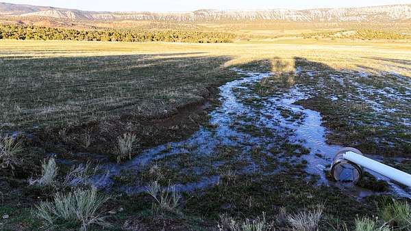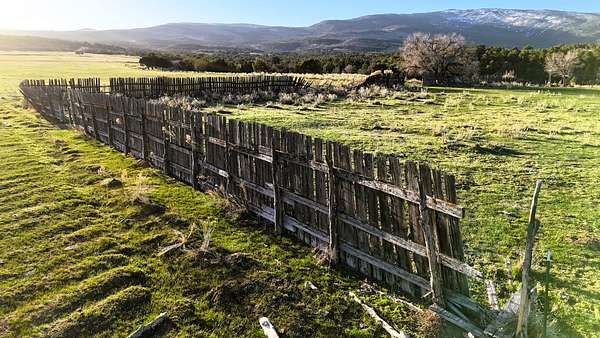 Approximately 100 acres consist of semi-irrigated meadow ground that has historically supported grazing livestock. These meadows provide open terrain with established grasses suitable for seasonal grazing. A gravity-fed irrigation system helps distribute water across portions of the meadow, making use of natural water sources on the property. Several springs flow on and through the parcel, providing water for livestock as well as habitat for wildlife that frequent the area.