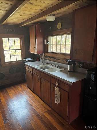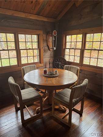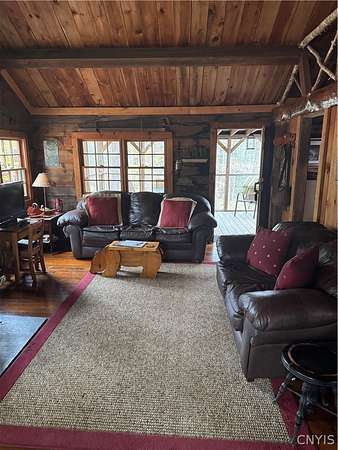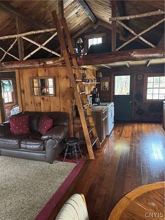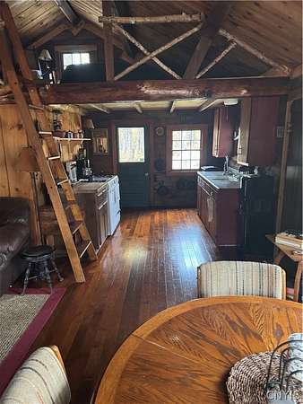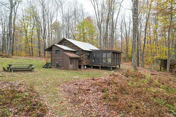 Beautiful Cozy Log Cabin on Five Acres with Waterfront! Discover your perfect retreat with this charming log cabin nestled on five lush acres. Enjoy 421 feet of serene waterfront along Wood Hull Creek, inside the picturesque Snowbird Lake area. Whether you're seeking a peaceful getaway or a permanent residence, this unique property offers tranquility, nature, and privacy. Features: Log cabin design with rustic charm; 2BR and 1 full bath, loft, kitchen, dining room and spacious living room. A 16x12 screened porch. One oversize shed for additional storage. Hand built by the seller in 2000 and meticulously maintained this turn key camp offers charm, privacy and your very own waterfront for kayaking, tubing and according to the seller some of the best trout fishing in the area. 5 acres of wooded land 421 feet of waterfront on Wood Hull Creek Located inside Snowbird Lake, ideal for boating, fishing, and water activities Quiet, scenic surroundings with over ten miles of gravel roads to walk, ride bikes and explore. Snowbird Lake is non motorized. Close to Old Forge, Boonville, and Utica. The local chapter of the snowmobile club is just a few miles away on Horton Road. HOA fees are 180$ per year. Don't miss this rare opportunity! Contact us today to schedule a viewing and make this waterfront haven yours.