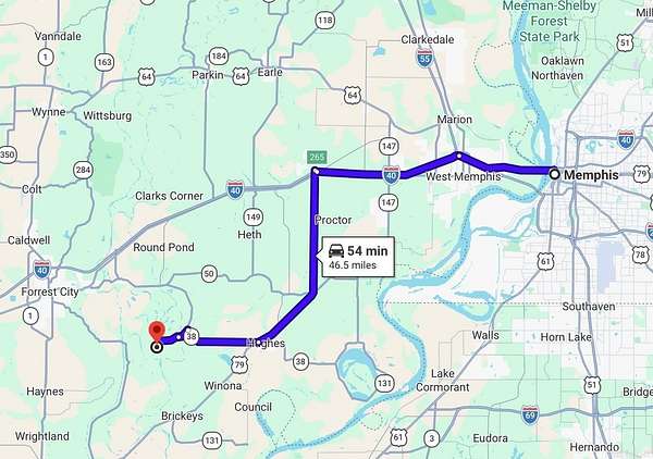 Directions From Hughes, AR: Travel 6.3 miles west on AR-38 W/Main Street. Turn left onto SFC 747 and continue 1.1 miles. Turn right on SFC 748 and proceed 2.2 miles into the property.