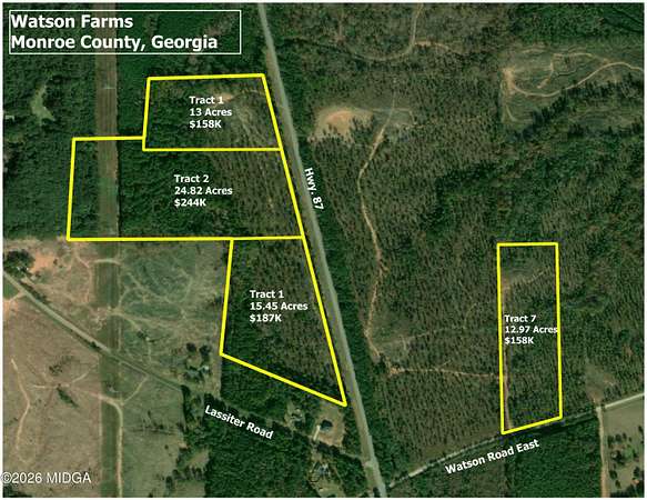 Est $1,380/mo15.45 Acre Estate Size Tract in Desirable North Monroe County. Great location just minutes away from Forsyth, Jackson and Lake Juliette. Numerous Homesites. Perfect for a mini farm or family compound.