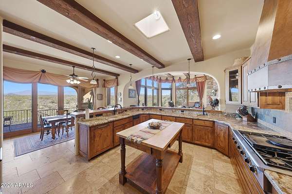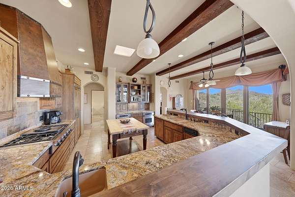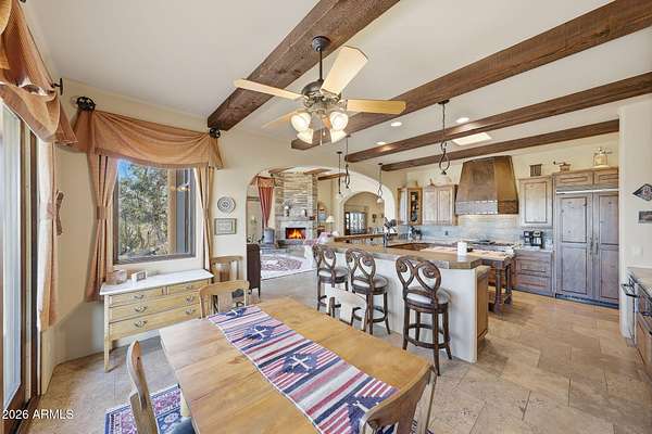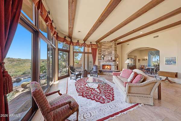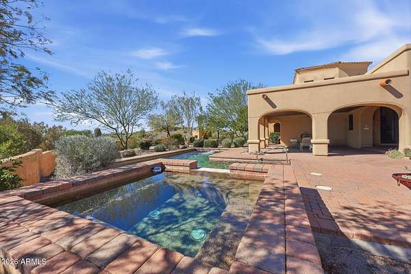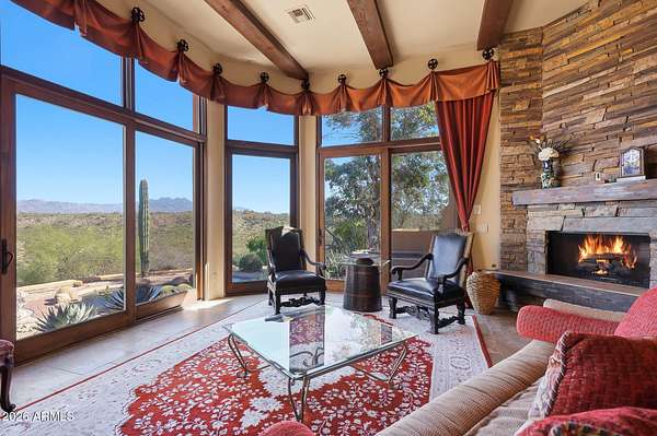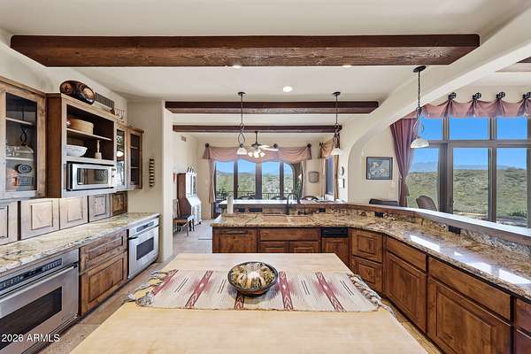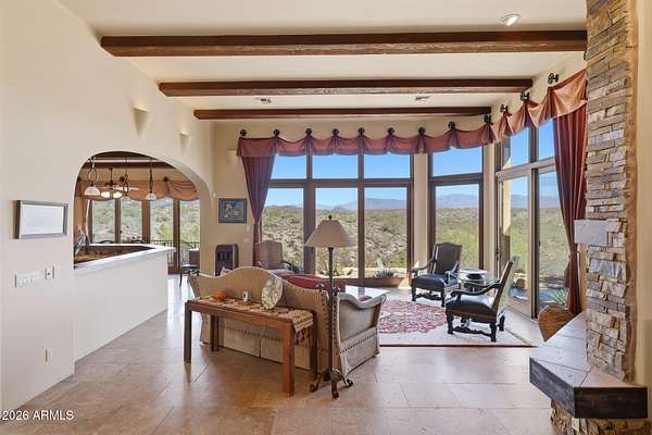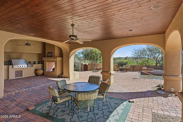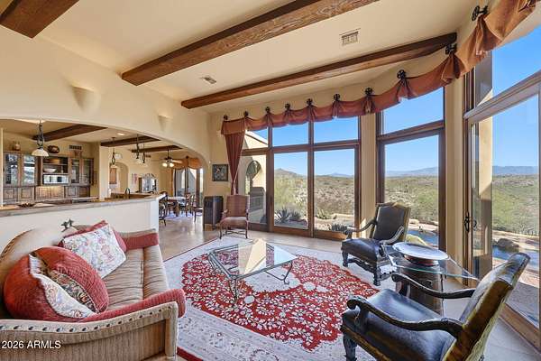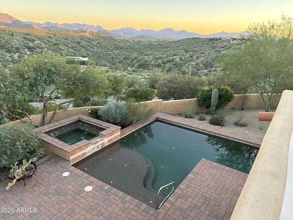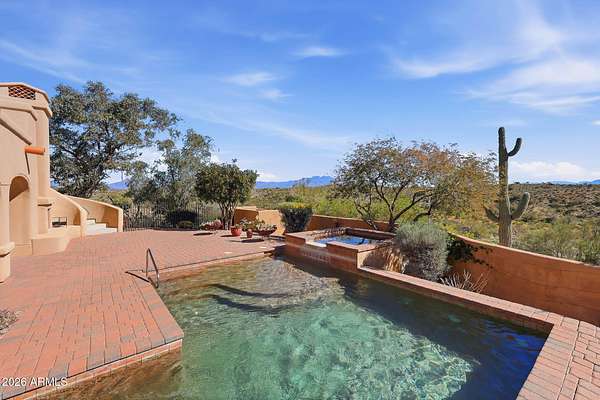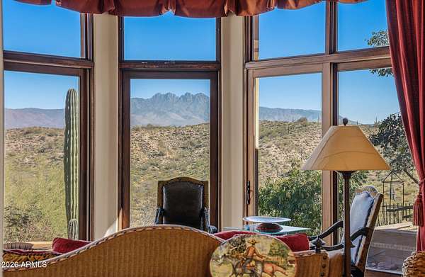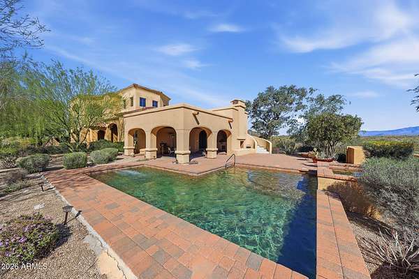 This tranquil estate is nestled against the Tonto National Forest & boasts breathtaking views in every direction. Goldfield Ranch is an opportunity to live the rural lifestyle w/ the convenience of town. Meticulously designed to bring the beauty of the outdoors in, views can be enjoyed from every angle. Perched on the top of a hill offering 360 degree views in every angle from the McDowell Mountains to Red Rock, to Four Peaks and everything in between. If you are looking for quality on top of a well designed floor plan this is the home for you. Enjoy the Endless lap pool where you can exercise against the current to swim laps, or sit by the self-cleaning Koi Pond. Relax in privacy on one of the many private patios. Entertain your guests and enjoy the sunrises or sunsets. Central Vacuum Some furniture may be available.