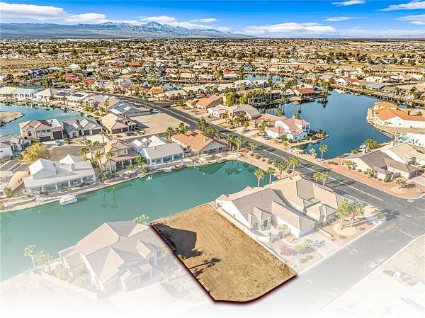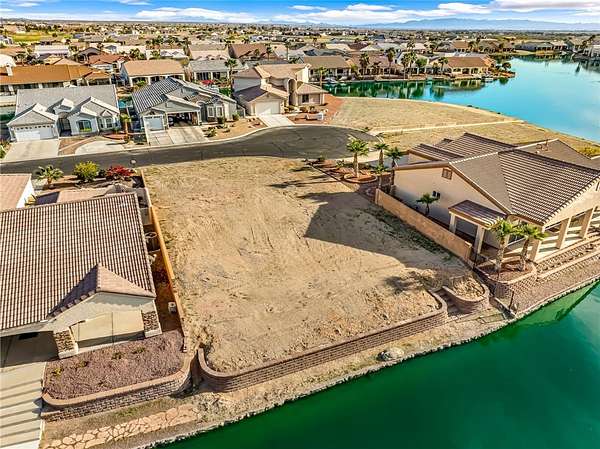 Rare opportunity to own a waterfront vacant lot in the highly sought-after gated community of Los Lagos in Fort Mohave! With very few lots remaining, this is your chance to build your dream home in one of the areas premier neighborhoods. The lot offers beautiful water frontage and the perfect setting for year-round living or a seasonal retreat. A builder already has plans available for a brand-new RV garage home, making it easy to bring your vision to life! Los Lagos is known for its resort-style amenities, including a sparkling community pool and spa, fitness center, clubhouse, tennis and pickleball courts, and beautifully maintained walking paths throughout the lush, landscaped grounds. Enjoy peaceful waterfront views, scenic bridges, and a true resort atmosphere just minutes from golf courses, shopping, dining, the Colorado River, and Laughlin s entertainment. Don't miss this chance to secure one of the last remaining waterfront lots in Los Lagos!