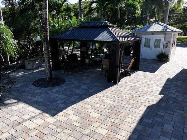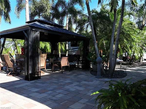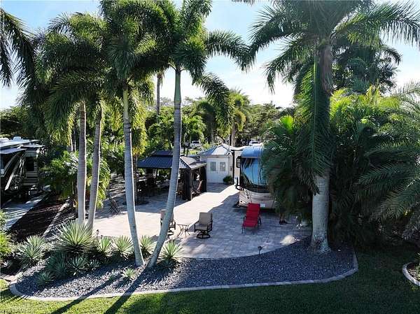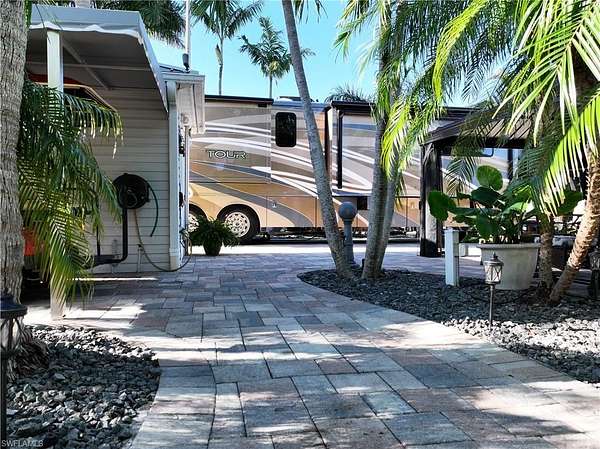 Now available - Lot D32 in Cypress Woods RV Resort, Fort Myers, FL! This exceptional lakefront, oversized pie-shaped lot spans nearly 6,000 sq ft, making it one of the largest and most desirable lots in the community. Beautifully improved with full paver coverage, rock landscaping, and mature palm and coconut trees, the lot offers a serene, tropical setting with no neighbors directly across, enhancing privacy and views. The finished accessory building includes a toilet, shower, and washer/dryer, providing added comfort and convenience. Canopy extensions offer additional shaded outdoor living space - perfect for relaxing or entertaining. Cypress Woods RV Resort is a gated, Class A motorcoach community with resort-style amenities. HOA dues are $1,064 per quarter, covering water, sewer, cable, lawn maintenance, and access to all amenities.