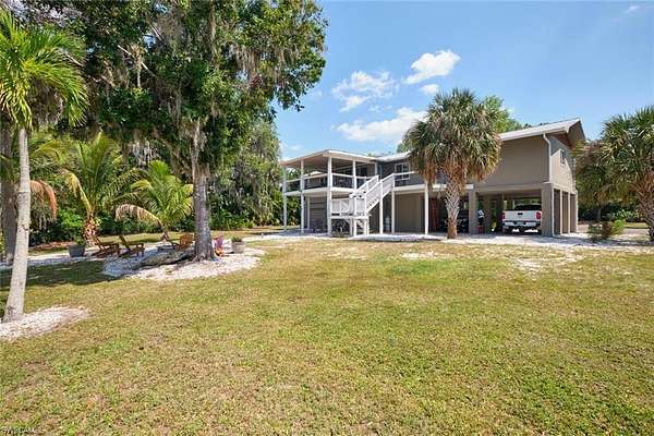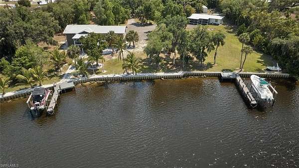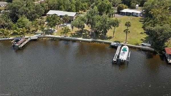 Sweeping Caloosahatchee River views, a private dock with lift, and a beautifully elevated design make this waterfront property a rare gem. Situated on nearly an acre, this home offers a perfect blend of comfort, functionality, and Florida lifestyle living. The elevated structure provides peace of mind and maximizes views, while the open floor plan captures natural light and stunning water vistas from nearly every room. Enjoy morning coffee or evening sunsets from the spacious deck overlooking the river. A concrete seawall and dock with boat lift mean you can be on the water in minutes, heading toward the Intracoastal Waterway or Gulf of Mexico. Whether you're seeking a seasonal getaway, a year-round residence, or an investment property, this home offers endless possibilities-and its large lot provides plenty of space for expansion, a pool, or outdoor living enhancements. This property may also be purchased together with the adjacent parcel (MLS #225040359 at 2212 River Pine Dr) for expanded development options, multi-home living, or creating your own private waterfront compound. Plat maps are attached to the listing to help visualize potential configurations for the property. While these concepts have not been approved by the county, they can provide inspiration for how you might maximize the site's unique waterfront location.