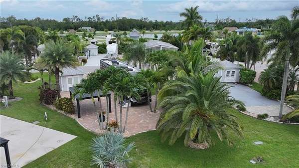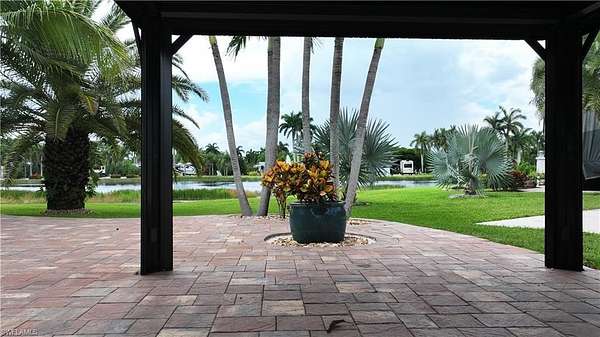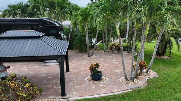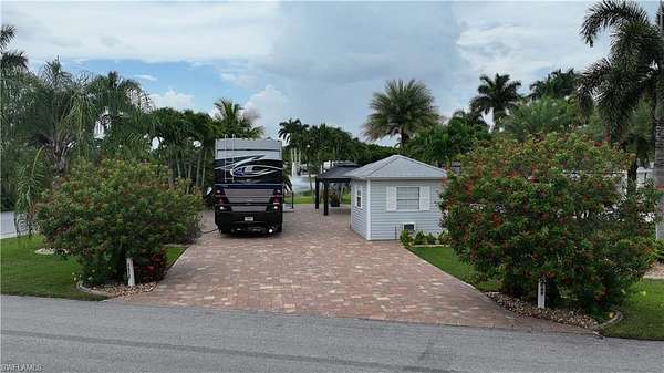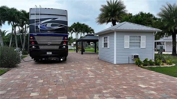 Welcome to Lot D69 in the sought-after Cypress Woods RV Resort - an expansive, fully pavered lot spanning approximately 6,300 sq ft and priced at $224,999. This beautifully landscaped, east-facing property backs up to breathtaking western sunsets and is surrounded by lush tropical palms for added privacy and ambiance. Enjoy outdoor living under the impressive 12x16 hardtop gazebo featuring motorized power curtains for comfort and shade. The well-appointed accessory building includes electric and brand-new fiberglass entry doors, offering both function and style. With a quarterly HOA fee of $1,064, D69 presents an exceptional opportunity to own in one of Fort Myers' premier RV communities.