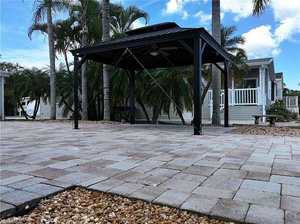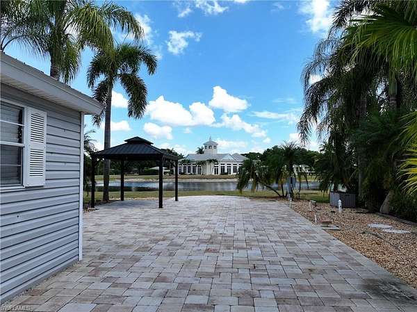 A54 is now for sale in Cypress Woods Rv Resort. This full paver lake front lot is a rare exception that can accommodate either a motorhome or a fifth wheel. Relax under the hard top gazebo that is plumbed with electric. The accessory building is fully permitted for electric, offers a recent 120amp panel installed, as well as plumbing. With excellent views of the stunning town center, beautiful lake and fountain, lush tropical feel, this lake lot is sure to impress. Facing South assists the tall palms to cast more shade throughout the day for this specific property. Reach out to listing agent today for more information!