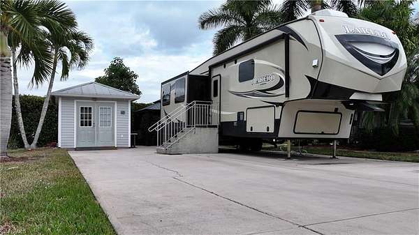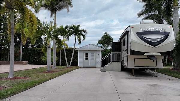 Located in the highly desirable Cypress Woods RV Resort in Fort Myers, Lot C104 offers an exceptional opportunity to own a private, well-positioned RV lot at an outstanding value. Priced at $119,999, this over 4,100 sq ft lot is thoughtfully laid out for comfortable outdoor living and future customization. The property features mature foxtail and pygmy palms, creating a lush tropical setting and an extremely private entertainment area. A 10x12 hardtop gazebo with electric provides the perfect space for outdoor dining, relaxing, or hosting guests. The accessory building is unfinished, allowing the next owner to design it to their needs, and is already equipped with electric service. It is built on a raised concrete slab, offering added protection against water intrusion. With no neighbors directly behind, this lot delivers enhanced privacy and peaceful surroundings-ideal for seasonal enjoyment, full-time RV living, or investment use. Cypress Woods RV Resort is a gated, amenity-rich community offering pools, clubhouse, fitness center, pickleball, and an active social calendar. HOA fees are $1,087 per quarter and include resort amenities, lawn care, water, sewer, and more.