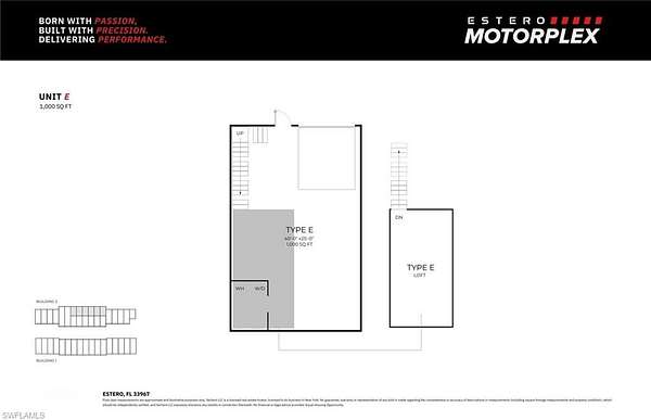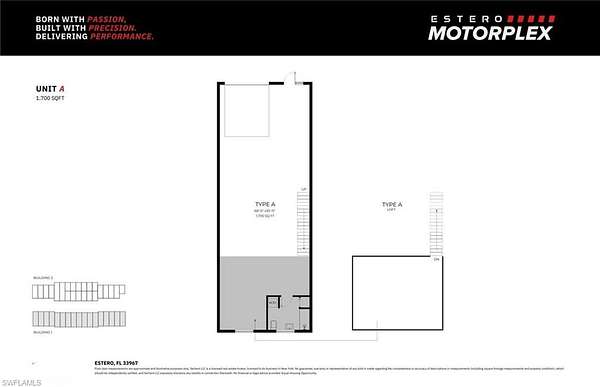 Introducing ESTERO MOTORPLEX, a luxury auto and motorcoach storage community located just West of I-75 on Estero Parkway, offering 40 units crafted with precision and passion. Each unit features full bathrooms, laundry hook-ups, mezzanines, and customizable space ranging from 1300 to over 2750 SF for your prized possessions. Elevating the standard of automotive luxury, ESTERO MOTORPLEX provides unmatched amenities like climate-controlled protection, washing and detailing areas, and 24/7 security and access. Designed for enthusiasts seeking excellence and convenience, this premier space fosters a social atmosphere where like-minded individuals can connect and enjoy the elite automotive lifestyle. Listing is for Unit C. 2756 SF. This listing is for ONE of 2 Units available with this floorplan in Building 2. Please see attached site plan and respective floorplan. Individual parcel numbers in process of being generated. This is Pre-Construction pricing. Total of 40 units available with various sizes to accommodate. Your space, your way - whether you seek a retreat for your vehicles or a personal getaway, ESTERO MOTORPLEX offers endless possibilities for customization and entertainment areas. Don't miss the chance to own a unit at this high-octane hideaway, where sophistication meets passion. Listing contains Virtual Renderings.
