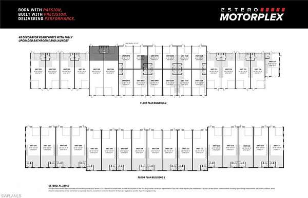 Introducing ESTERO MOTORPLEX, a luxury auto and motorcoach storage community located just West of I-75 on Estero Parkway, offering 40 units crafted with precision and passion. Each unit features full bathrooms, laundry hook-ups, mezzanines, and customizable space ranging from 1300 to over 2750 SF for your prized possessions. Elevating the standard of automotive luxury, ESTERO MOTORPLEX provides unmatched amenities like climate-controlled protection, washing and detailing areas, and 24/7 security and access. Designed for enthusiasts seeking excellence and convenience, this premier space fosters a social atmosphere where like-minded individuals can connect and enjoy the elite automotive lifestyle. Listing is for Unit E. 1463 SF. This listing is for ONE of 6 Units available with this floorplan in Building 2. Please see attached site plan and respective floorplan. Individual parcel numbers in process of being generated. This is Pre-Construction pricing. Call Ronnie for details and additional information. Total of 40 units available with various sizes to accommodate. Your space, your way - whether you seek a retreat for your vehicles or a personal getaway, ESTERO MOTORPLEX offers endless possibilities for customization and entertainment areas. Don't miss the chance to own a unit at this high-octane hideaway, where sophistication meets passion. Listing contains Virtual Renderings.