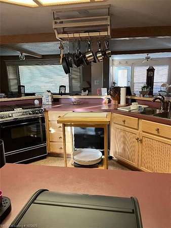 Est $1,958/moHome sits on 2.3 tree covered acres, 2 driveways, 3 bedrooms, 3 full baths, sunroom, den, bar with access to deck, office, great room incudes custom kitchen designed by General Electric Kitchen designer George T. Warren, separate landscape water meter, wrap around deck leads to Luther Stem pool, detached storage, detached shop/studio/ADU originally used for staff, beautiful stained glass cabinets, built-ins in closets, custom wet bar, two central heat and air units, 2 fireplaces-one in dining area has been capped off, floors are hardwood, linoleum and tile, ceiling fans