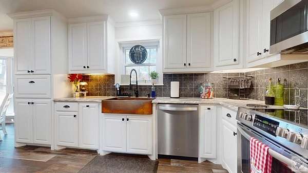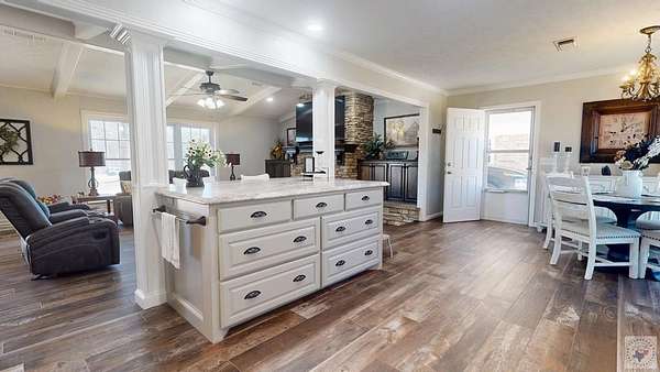 Discover the peaceful country lifestyle you've been dreaming of! Nestled in Fouke, AR within the sought-after Genoa ISD, this beautifully refreshed 1977 home sits on a sprawling 5-acre retreat, complete with an impressive workshop designed for your hobbies and projects. Step inside to find thoughtfully updated interiors showcasing fresh flooring, modern paint, and stylish light fixtures throughout. The heart of this home is the stunning kitchen, where a magnificent oversized island anchors the open-concept living space. Gleaming countertops provide abundant workspace, while the charming farmhouse sink adds timeless character. Picture yourself gathering with loved ones around the cozy fireplace on crisp evenings, natural light streaming through expansive windows that frame your private acreage. Three generously proportioned bedrooms offer comfortable retreats for the entire family. The primary suite boasts a spa-inspired bathroom with elegant tiled walk-in shower and premium countertops. Guests will adore the vintage-inspired bathroom featuring a luxurious clawfoot soaking tub-perfect for unwinding after long days. The property's 20x50 insulated workshop with electricity is a true standout, flanked by two substantial 15x50 lean-tos providing exceptional storage and versatility. A spacious RV shed conveys with the property, ideal for storing recreational vehicles or equipment. This remarkable property seamlessly blends country tranquility with modern convenience-schedule your private showing today and experience everything this exceptional home has to offer! There is also 35 additional acres we are willing to sell with the home, price will be 474,000.
