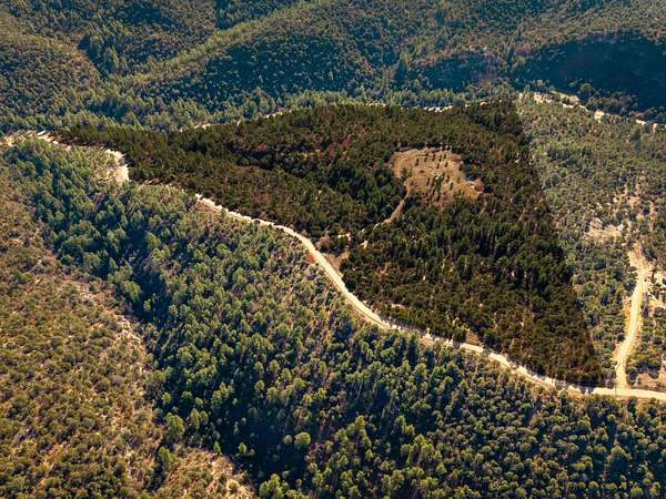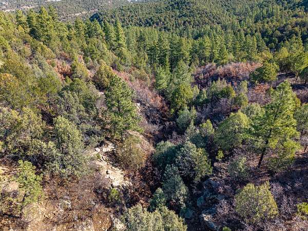 Heavily wooded property in tall pines with deep seasonal creek beds. Top and bottom road access.