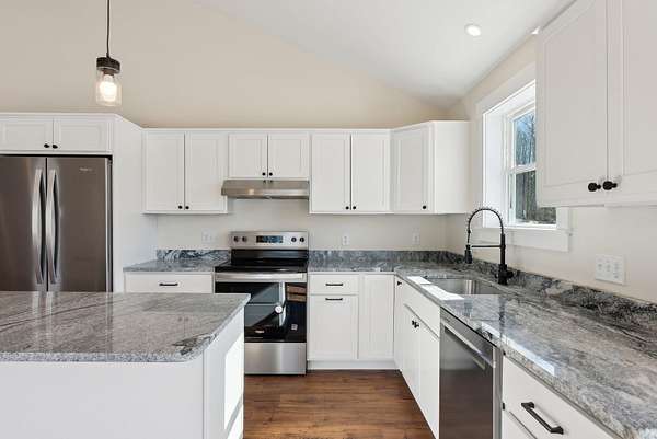 TO BE BUILT-Estimated completion mid May-June. Pictures are from previously built home and will include similar finishes. Lot #4 a thoughtfully designed ranch set on a 2+ acre level lot. Just minutes to Route 202 in Maine and Route 16 in New Hampshire, this home offers easy access for commuting while still providing privacy and space. This 3-bedroom, 2-bathroom home features an open-concept layout with vaulted ceilings that create a bright, airy feel throughout the main living space. The kitchen is designed for both function and style with granite countertops, stainless steel appliances, and soft-close cabinetry. The primary suite offers a spacious walk-in closet and a private ensuite bath featuring tile flooring and a double vanity. Two additional bedrooms and a full bathroom provide flexibility for guests, home office space, or family living. Energy-efficient heat pumps deliver year-round comfort. The oversized drive-under two-car garage offers generous room for vehicles, tools, and plenty of storage. Outside, the level lot allows for versatile outdoor. Includes professional hydroseeding, a stamped concrete walkway, retaining wall and a composite back deck. Located just 5 minutes from the New Hampshire border and approximately one hour to Portland. Do not walk property without a scheduled showing.