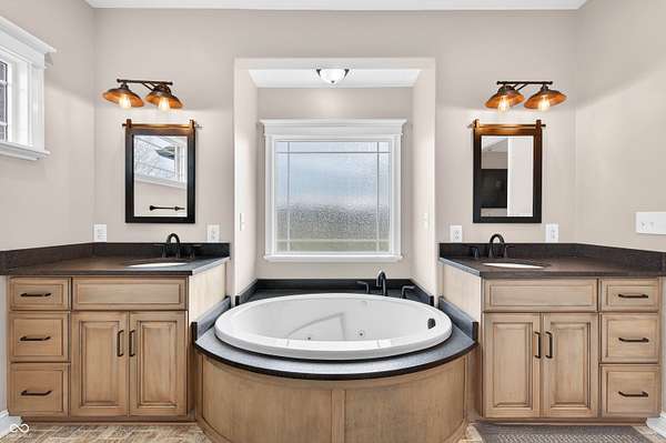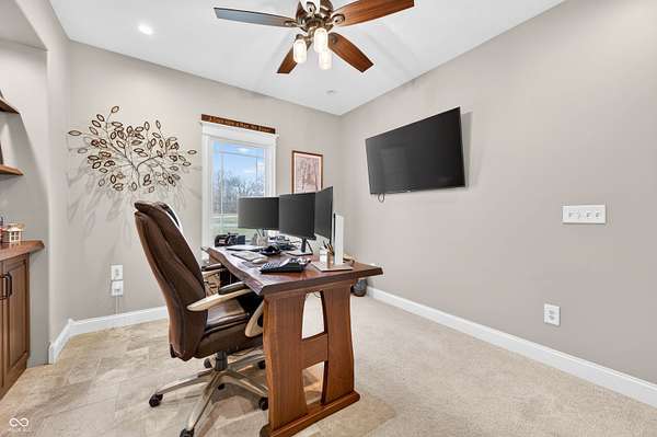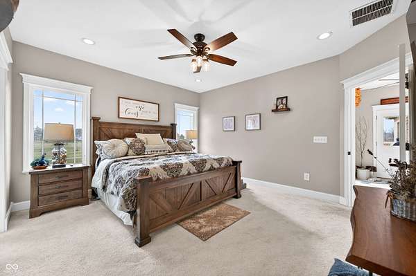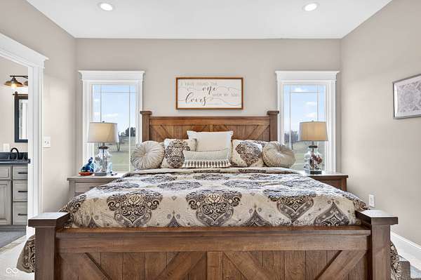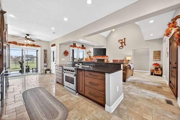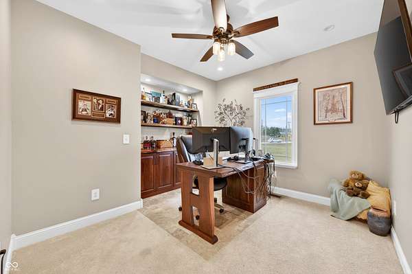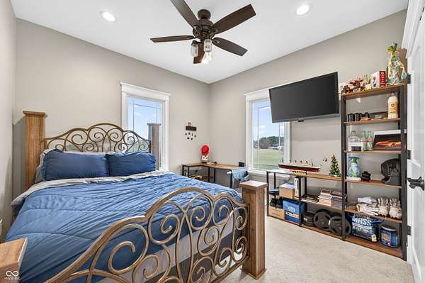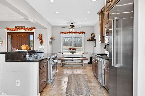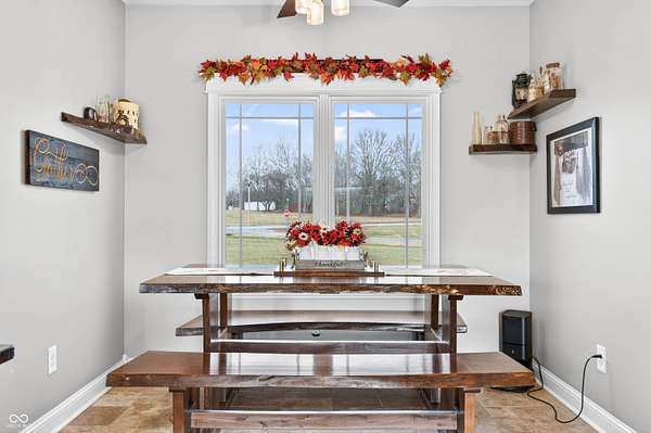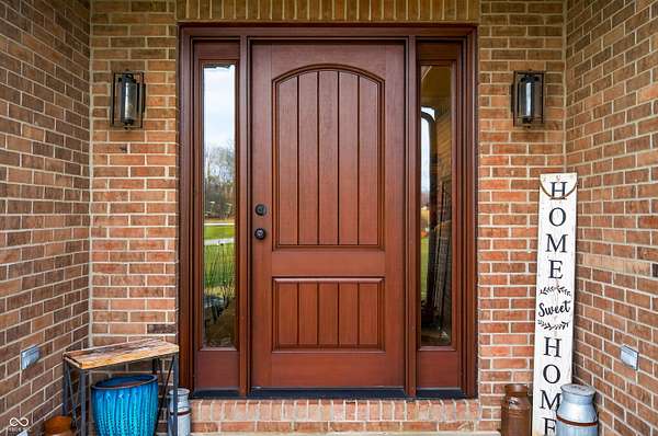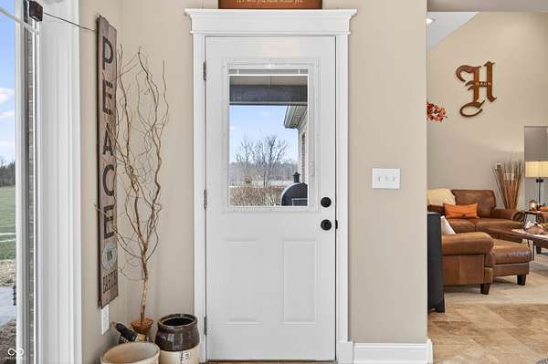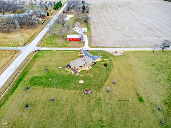Refined craftsmanship, thoughtful design, and expansive acreage converge in this exceptional custom brick estate set on 5.4 beautifully landscaped acres. Ideally positioned on a corner lot along State Road 135, this residence offers privacy and presence just minutes from the growing town of Bargersville and the charm of Trafalgar. The home features three spacious bedrooms plus an office, with a partially finished upstairs offering the opportunity to create a fourth bedroom or private sitting area, and additional bath-already plumbed and ready for completion-along with generous storage. Inside, natural stone flooring anchors the main living spaces, while Marvin windows flood the home with natural light and showcase views of the surrounding countryside. A statement fireplace serves as a focal point, with a separate gas hookup available for those who prefer it. The chef's kitchen is outfitted with premium Viking appliances, blending luxury and functionality for everyday living and elegant entertaining. Modern efficiency is seamlessly integrated throughout the home with spray foam insulation in key areas, an oversized humidifier, water purification system, and all-electric design. High-speed internet ensures connectivity without compromise. Designed with future comfort in mind, the property includes electrical in place for a hot tub, sidewalks plumbed for heated sidewalks, and well and septic systems. Mature landscaping, smaller trees, and shrubs enhance the natural setting, creating a serene outdoor environment with endless possibilities. This distinctive property offers an all brick ranch, rare acreage, superior construction, and refined amenities-an extraordinary opportunity for those seeking luxury, flexibility, and long-term value in a rapidly growing area.