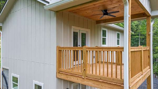 Charming New Construction - 2 Bed, 2 Bath Nestled on a private 1.69 +/- acre lot in a peaceful gated community between Franklin and Sylva, this brand-new home combines comfort, style, and serene mountain living. Step inside to find quality finishes and thoughtful details throughout. The primary bedroom features a private balcony, the perfect spot to unwind surrounded by natural beauty. The stone patio creates an inviting outdoor living space, ideal for morning coffee or evening relaxation. This quiet community offers more than just tranquility-it includes a creek and community pond, perfect for peaceful walks or simply enjoying the outdoors. With easy access to both Franklin and Sylva, this home provides convenience while maintaining the feel of a private retreat. Whether you're looking for a weekend escape or a full-time haven, this beautifully crafted home is a true mountain gem.