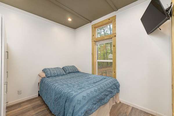 Tucked in the tranquil Simplicity Woods of Clarks Chapel, this charming 2BR/1BA tiny home is a perfect blend of comfort and functionality. Outside, you will find a nice fire pit and a fenced-in area for pets to roam, children to play, and/or an area for gardening. Inside, the bright and airy layout features stainless steel appliances, a breakfast bar for casual dining, and a loft for extra storage or creative space. Whether you're looking for a cozy full-time home, peaceful weekend escape, or investment property, this gem offers big potential in a beautiful natural setting.