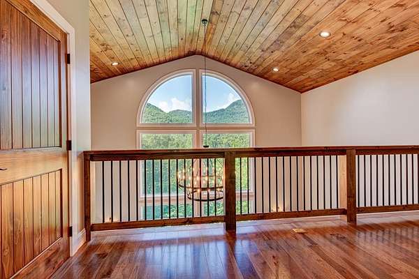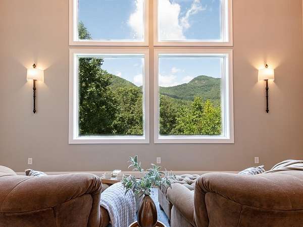 Surrounded by the Blue Ridge Mountains, this exquisite retreat redefines luxury living with its unparalleled blend of natural splendor and refined elegance. Boasting around 6,000 square feet of meticulously crafted living space, this residence offers a sanctuary of comfort and sophistication for the discerning homeowner. The property's generous outdoor spaces invite you to immerse yourself in the breathtaking mountain vistas, whether from the expansive covered deck, great for entertaining, or the indulgent tanning/star gazing/observation deck that seems to float amidst the clouds. The pavilion borders along near 600 feet of the bold, Tessentee Creek, with room for RV's or camping with guests. This architectural masterpiece features four spacious bedrooms and four opulent bathrooms, each a testament to the property's commitment to quality and craftsmanship. The primary bedroom, a veritable oasis of tranquility, offers a private retreat with a stunning view of the mountains. Culinary enthusiasts will delight in the two kitchens, perfect for entertaining on a grand scale or intimate gatherings. Come, elevate your lifestyle experience and start living your mountain home dreams!