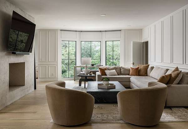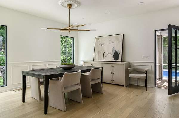 The chef's kitchen is a showstopper, featuring marble countertops, a La Cornue range, and a spacious butler's pantry. The newly redesigned primary suite offers a spa-like bath with heated floors for year-round comfort.