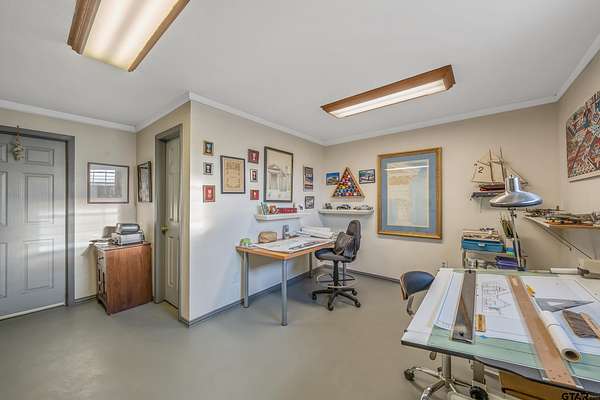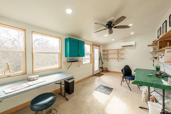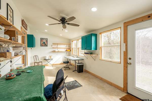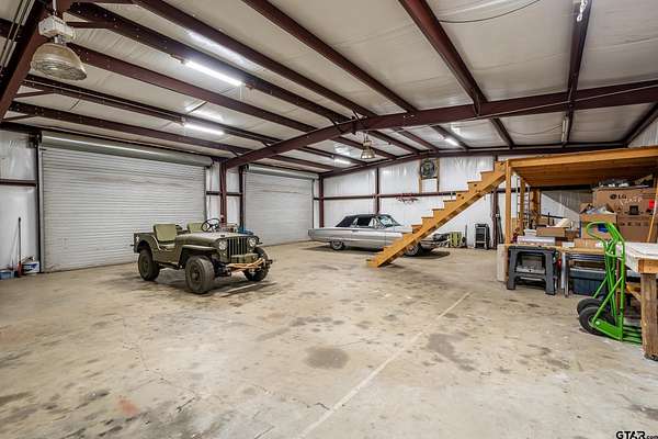 Exceptional 2,400 sq ft Multi-Purpose Shop Anchors This Serene Country Estate. Situated on 5.84 picturesque acres between Frankston and LaPoynor, this rare property blends functionality, privacy, and peaceful country living. The impressive metal building offers incredible versatility with comfortable living quarters featuring a full bath and dedicated septic system, a light-filled art studio with mini-split for year-round climate control, and ample space for a workshop, storage, or garage with three roll-down doors and built-in shelving--ideal for artists, craftsmen, hobbyists, or business owners seeking room to create and operate. Surrounded by towering hardwoods, rolling pastureland, and abundant wildlife, the property provides a private retreat with breathtaking sunsets and tranquil natural surroundings. The thoughtfully updated main residence offers 3 spacious bedrooms, 2.5 baths, and 2,166 sq ft of comfortable living space. Recent improvements include new tile flooring, upgraded carpet, fresh interior paint, updated countertops, resurfaced cabinetry, and stainless steel appliances. A two-year-old roof adds peace of mind, while the expansive extended back patio creates the perfect setting for relaxing or entertaining as you enjoy the sights and sounds of nature. Additional features include a whole-home propane-powered Generac generator, a code-required security gate, and partial pipe fencing for added convenience and security. With endless space to explore, work, and unwind, this one-of-a-kind country estate offers the perfect balance of productivity and tranquility. Schedule your private showing today and experience the privacy, versatility, and beauty this remarkable property has to offer.
