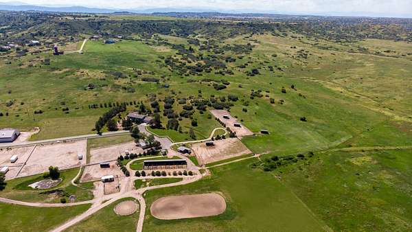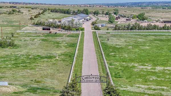 Castlewood Equestrian Center is a full-scale boarding and training facility located on a total of 151 acres just west of Franktown, Colorado. The property currently is permitted for 130 horses on site. Improvements include a large indoor stall barn with 44 heated stalls and an attached indoor riding arena. The remainder are covered outdoor open stalls with runs or loafing sheds with paddocks. Additional improvements include turnout pens, pastures, large shop and hay storage, and various round pens, sheds and tack rooms. The facility is professionally managed, modern and clean. The amenities include riding indoors as well as on the property. Additionally, the property adjoins and has access to the Cherry Creek Trail system and Mesa Buttes open space offering unlimited trail riding. The tastefully remodeled home on site rounds out the property. An ancillary property of 36 acres is also available for the buyers to acquire, but it is not a part of this listing.