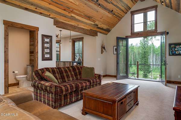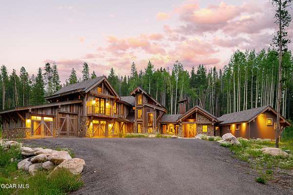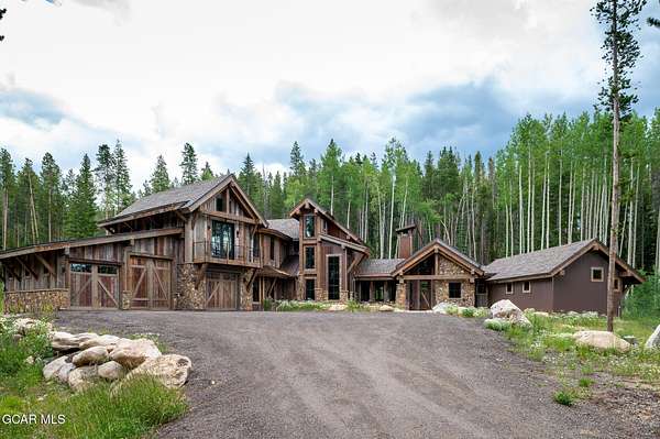 Few words can accurately describe this spectacular Terra Firma home on 35 acres. Located just 6.5 miles from Winter Park, this unique home is nestled in a peaceful aspen & pine grove in a rare and irreplaceable setting. The barn wood home blends seamlessly into the environment. Exterior spaces flow intuitively into a spacious, sprawling floorplan and large, purposefully placed windows integrate the outdoors into the home. Designed by a special team, the home is cutting edge yet warm and inviting - a difficult balance to reach. Ranch Creek cascades peacefully through the property year around. A local watering hole for wildlife and a sanctuary for Brook Trout, this stunning watercourse flows gently down the lot. 2,055 acres of public lands abut the property on two sides, offering endless... ... recreational opportunities from snowshoeing and cross country skiing to hiking, fishing and hunting. There are few major ski towns where you can find an heirloom property with access to public land and a creek just minutes from town. With two levels the home has plenty of room for family and guests. The main floor includes a large mud room with multiple access points to the exterior. The oversized 3-car garage incudes one bay with dual doors for easy in and out access with mountain toys like snowmobiles and 4 wheelers. Once inside, there are two ensuite bedrooms on the main floor including the primary suite. The center of the home is grounded by a steel and reclaimed wood staircase and a curved rock wall. The kitchen is uniquely designed with continuous grain cabinets. Right off the kitchen is a large dining area and a screened in porch with a wood burning fireplace. The grilling patio is covered for year-round outdoor cooking. The central living room is delineated by an open, 3-sided massive rock fireplace and two story wood ceilings. Upstairs are two more bedrooms, an office and a rec room compete with bar and two decks overlooking the forest. With just over 35 acres, a future owner has the opportunity to consider splitting off 2 parcels via the Grand County Subdivision Regs. An excellent avenue for a buyer to turn this home into an investment opportunity. Please check with the Grand County Planning and zoning department on possible subdivision options. This epic home on an amazing piece of property is being sold furnished and ready to enjoy this winter!