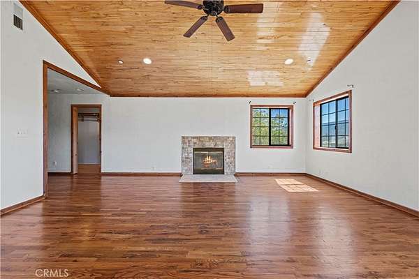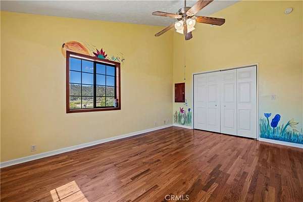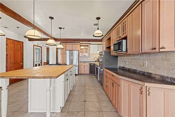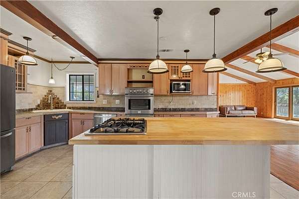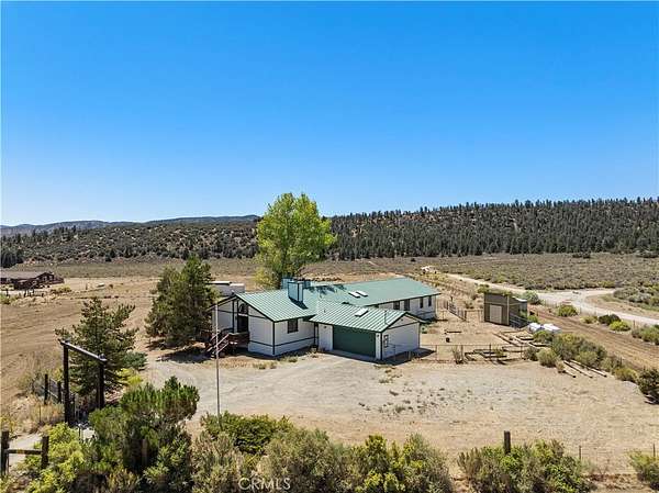Nestled in the mountains and surrounded by natural beauty, this magnificent estate combines timeless craftsmanship with modern updates on over 5 acres bordering 600 square miles of National Forest. Recently refreshed with new exterior and interior paint and beautifully refinished hardwood floors, the single story custom home offers sweeping panoramic views and trails right outside your door. The residence features 5 bedrooms, 2.5 bathrooms, and nearly 3,600 square feet of thoughtfully designed living space. The expansive living room showcases vaulted ceilings with exposed beams, while the chef’s kitchen is equipped with a walk in pantry, double oven, marble countertops, artistic backsplash, custom cabinetry, and a striking butcher block island. Radiant heated floors warm the kitchen and dining areas, and three fireplaces add inviting charm throughout the home. The primary suite is a private retreat with vaulted ceilings accented in exotic Asian birch, a cozy fireplace, and a spa inspired bath with a cast iron tub and oversized shower. Built for both beauty and resilience, the property includes a lifetime metal roof, full sprinkler system, dual propane tanks, boxed in eaves, complete fencing with an electric gate, and a backup generator powering the entire home and well pump. Equestrian facilities include corrals and a powered tack room, offering a ready made retreat for horse enthusiasts. Located just 45 minutes from Santa Clarita, this rare estate delivers the perfect blend of seclusion, modern updates, and timeless natural beauty.