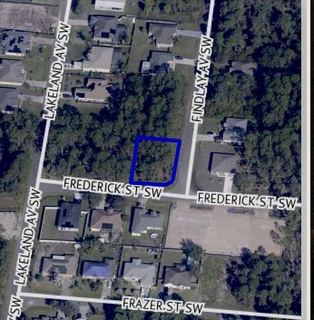 Owner Financing Considered.Corner Lot Opportunity in Palm Bay! This .24 acre corner lot at Frederick St SW and Findlay Ave SW is an excellent place to build your new home or hold as an investment .No HOA .With frontage on two Streets ,the property offers added Flexibility and design options .Enjoy all that Palm Bay has to offer ,including nearby parks ,nature preserves ,golf courses ,shopping ,dining ,and easy access to major roadways .Outdoor lovers will appreciate the proximity to Tukey Creek Sanctuary ,Castaways Point Park ,and the Indian River Lagoon ,with Atlantic beaches just a short drive away .Whether you're ready to build now or plan for the future ,this lot offers plenty of potential in a growing area of Palm Bay . Buyers to do their own due diligence and verify all information