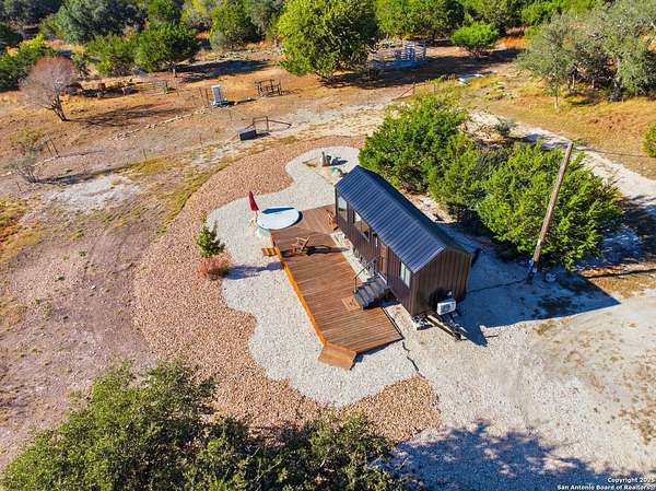 13 Unrestricted Ag Exempt Acres in Fredericksburg, TX Hill Country Charm Meets Rustic Luxury Tucked away in the heart of the Hill Country, this 13-acre unrestricted gem offers peace, privacy, and postcard-worthy views just minutes from Fredericksburg's vibrant Main Street. Currently operating as a successful short-term rental, the property delivers that rare mix of tranquility and income potential. Wake up to the soft lowing of 4 Highland cows, 2 rare Valais Blacknose sheep, 1 Dexter, and 1 HighDex - all of which convey with the property. Because really, what's life in Fredericksburg without a few four-legged locals to keep you company? The property features a modern and cozy 200 sq. ft. RV retreat, thoughtfully designed with two twin bunks and a queen bed, a two-burner cooktop, mini fridge, and ceiling fan. Huge picture windows invite the stars in at night, while a wooden deck, porch swing, and fire pit create the perfect setting for slow mornings and starlit evenings. With a private water well, septic system, and electricity already in place, you've got everything you need to expand, build your dream home, or continue its life as a turnkey Airbnb escape. The existing well and septic are capable of supporting either two additional cabins or a 2,200 sq. ft. home, giving you flexibility to dream big. The property is also equipped with Starlink Internet and a security system so you can enjoy modern connectivity and peace of mind while still feeling a world away. When you visit, plan to spend at least an hour to fully take in everything this property has to offer. Wear comfortable shoes or boots and take your time exploring, a marked trail and printed maps are provided so you can walk the full 13 acres. You'll discover multiple flat, build-ready sites nestled among the oaks, ideal for cabins, a home, or your next creative venture. Quiet, peaceful, and surrounded by wide-open skies - this slice of Texas is more than land. It's a lifestyle.
