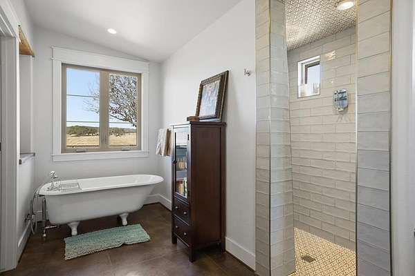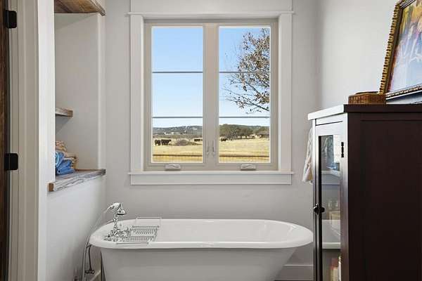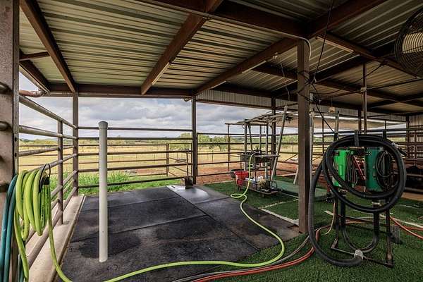 Set minutes from Fredericksburg's Main Street and wineries, 5686 Ranch Road 1631 offers 13.25 acres with the kind of equine and livestock improvements buyers rarely find this close to town. Behind a custom electric gate, the property is cross-fenced with tight lock-net and pipe/panel fencing, creating a clean, functional layout for horses or cattle. Three improved grass pastures, a clay-lined stock pond, and an agricultural exemption support both lifestyle and long-term usability. The 2,315 sq ft custom home--built in 2009 by Laughlin Homes & Restoration--has just been fully repainted inside, giving the residence a crisp, move-in-ready feel. The home features 3 bedrooms, 3.5 baths, a spacious kitchen with Thermador appliances, custom cabinetry, concrete countertops, and an island built for gathering. Outdoor living is equally strong with a stone patio, pergola, outdoor fireplace, and outdoor shower--ideal for Hill Country evenings after a day outside. Infrastructure includes a 60x40 modern Mueller metal barn with a custom welded pen system, covered working pens, a rainwater collection system for the wash rack, and a 10x10 enclosed insulated feed/tack room. A separate 1-bedroom casita with full bath connects to a double carport and workshop, offering flexibility for guests, a ranch hand setup, or additional living space. B&B permitted and an additional guest home can be constructed (buyer to verify). This is a true turnkey ranch setup in a prime Fredericksburg corridor.