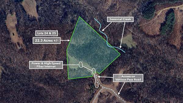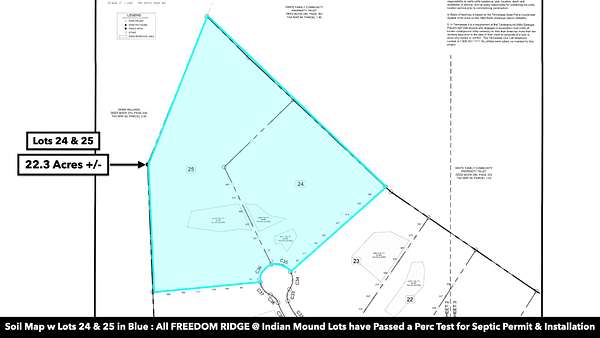 Welcome to Freedom Ridge, where nature and freedom meet. This beautiful corner lot has already been soil tested and is perc-approved for a 4-bedroom home on Lot 25 and a 2-bedroom home on Lot 24, making it truly build-ready.