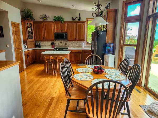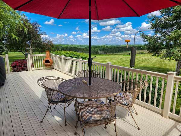 Welcome to this beautifully maintained retreat on 1.79 professionally landscaped acres at Lake Carroll! From the covered front porch to the maintenance-free vinyl deck, you’ll love soaking in the peaceful, panoramic views of the countryside. Inside, the main level features hardwood floors and an inviting layout—your living room opens to a bright, eat-in kitchen with an island, pantry, and newer Andersen sliding door (2022) leading to the deck. The formal dining room offers plenty of space to host family and friends. Also on the main level: a convenient laundry room, half-bath, and spacious primary suite complete with a walk-in closet, jetted tub, double vanity, and separate shower. A second main-level guest bedroom is paired with an adjacent full bath. Downstairs, the finished lower level offers even more living space with a large family/rec room, two additional bedrooms, a full bath with dual sinks, a flex room to use for your office or hobby space, and a generous 580 sq ft utility/storage room. The heated 3-stall garage includes a workshop in the third bay. Recent updates include a new roof (2021), furnace (2022), and zoned heating system. Furniture negotiable. Located near the West Marina and beach—this home checks all the boxes for comfort, style, and space! Buyer and or buyer agent to verify all information, sizes, square footage, figures, school zones, taxes, exemptions, and zoning. Sizes and measurements approximate. Subject to LCA transfer fee.