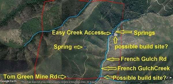 Hwy 299W to French Gulch. Right on Trinity Mountain Rd go 2.9 mi. Left on French Gulch Rd go 1 mile to Pink tape and RE sign. Or go 2.6 miles from main road. Left on Tom Green Mine Rd go 1.7 miles.