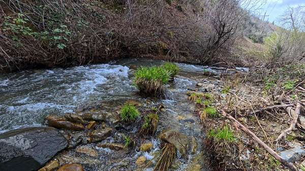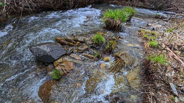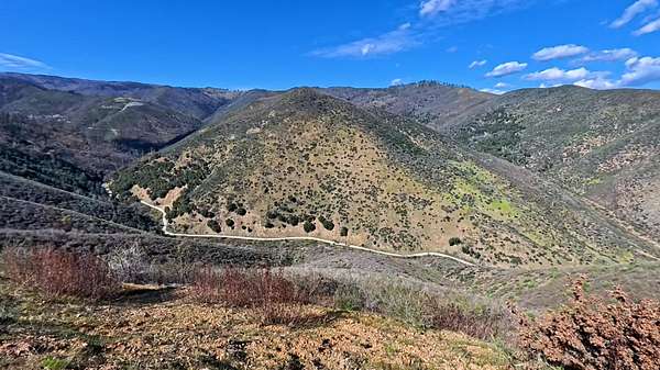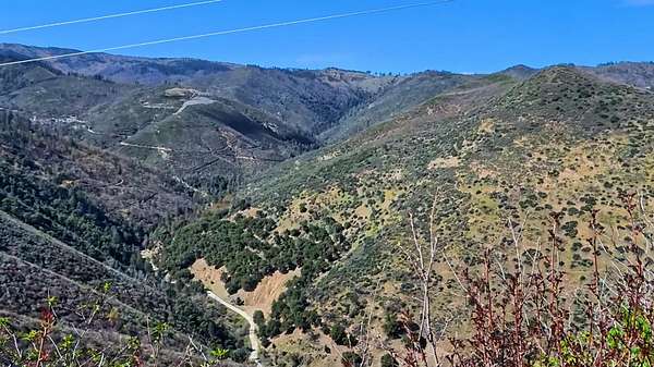 One full section of mostly steep land but with several great features including power along the bottom road. First, it is completely surrounded on all 4 sides by 6,700 acres of government land. Second, there are springs and year round French Gulch Creek! Lastly, there is power to at least 2 possible build sites. Both roads running though the property are county roads according to the title company. Cell coverage on the upper road. In 1850 French Gulch was one of California's major gold producers and at least 2 are still active today and located just up the road from the property. Both approximate road frontages are marked with pink tape so you can see where the property starts and stops. Elevation ranges from 1600 feet to 3000 feet at its highest peak.