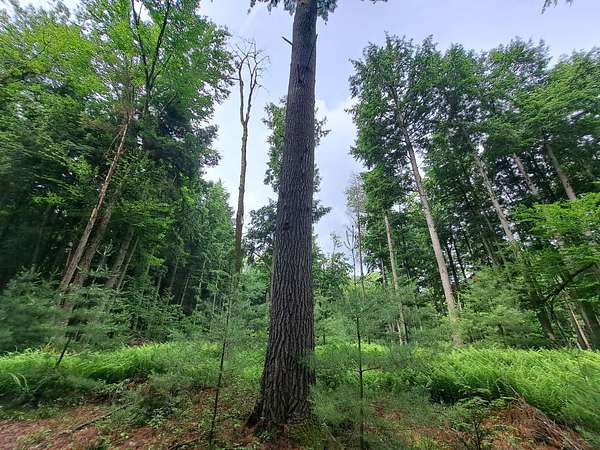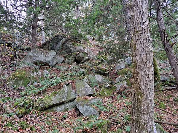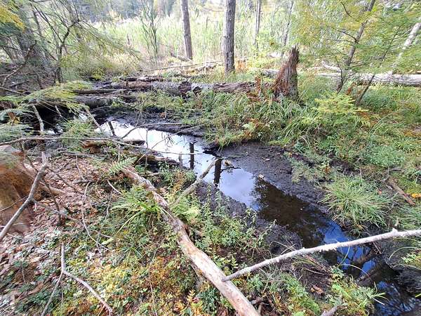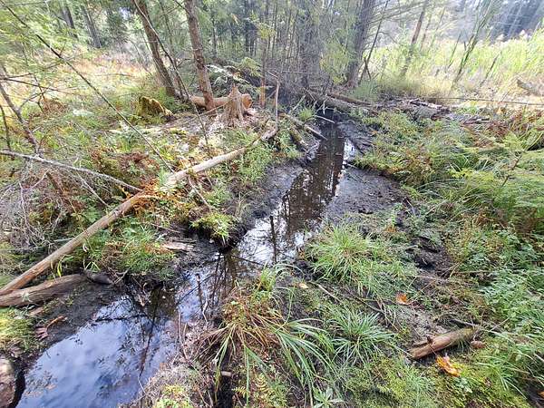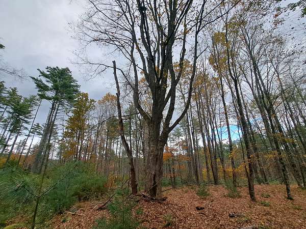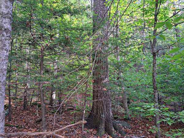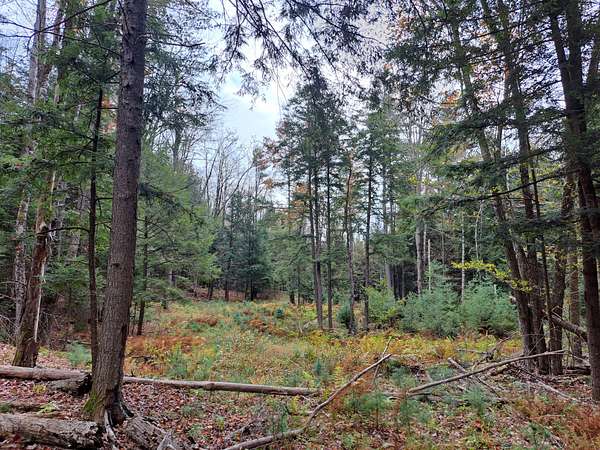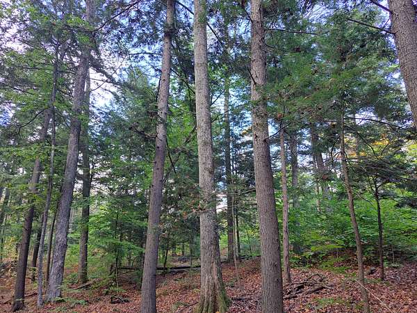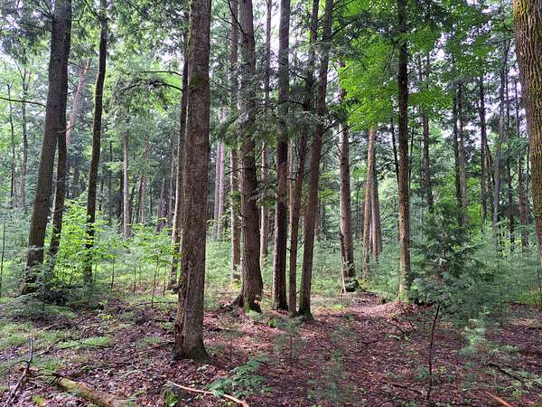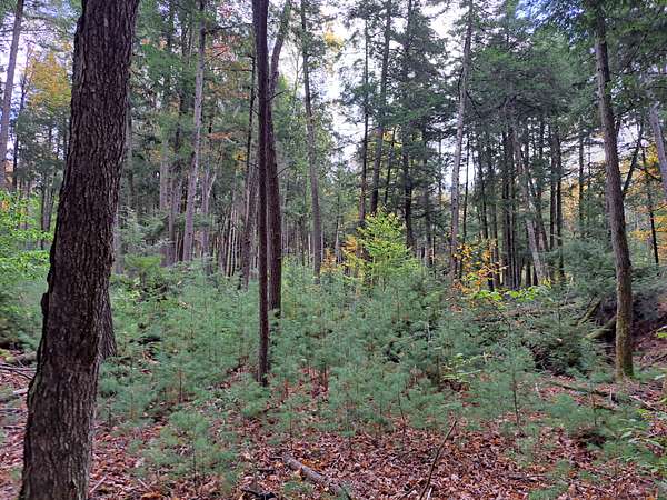 Decades of professional forest stewardship on the property have promoted timber quality and diversity, as well as varied habitat for many wildlife species. The hemlock and pine trees offer important thermal cover for wintering deer, and the red oak trees contribute acorns as a critical food source for deer, bear, and turkey. Tracks, scat, and buck rubs indicate abundant deer activity. Limited canopy openings have been created during forestry operations, leading to a flush of ground-level growth beneficial to wildlife.