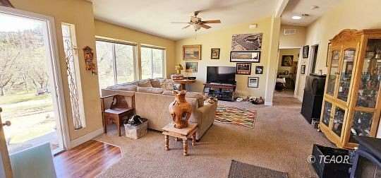 Nestled in the country and just 10 minutes from town is this well cared for, 3 bdrm, 2 bath, fully permitted 2014 manufactured home on a permanent 433a foundation (per county). The home has an open floor plan, spacious kitchen with island, tiled counter tops and unending million-dollar views throughout. Master suite is equipped with a full bath, soak tub, shower, and each room has its own walk-in closet. Enjoy 2 parcels totaling 11.29 acres (zoned Ag), a private pond, lots of flat usable land & gardening space, private well, outbuildings. Property bordered by BLM on the west side. The opportunity to own a little slice of heaven like this is RARE!! The sky is the limit here!! Absolutely must see in person to fully appreciate. NO DRIVEBY'S-please be respectful of occupants and call an agent to schedule a showing! The accuracy of information provided is deemed reliable but is not guaranteed, is subject to change and all information to be investigated fully by buyer.