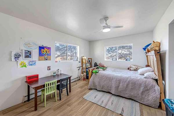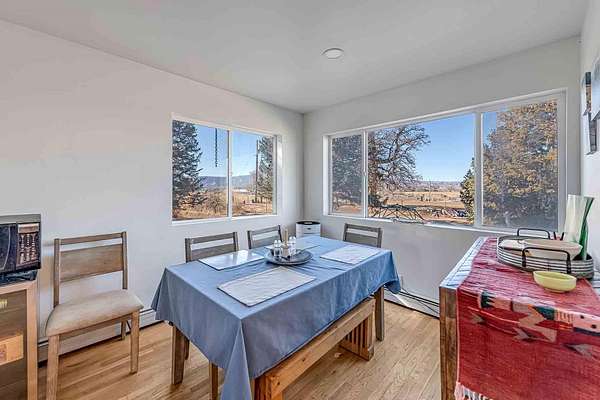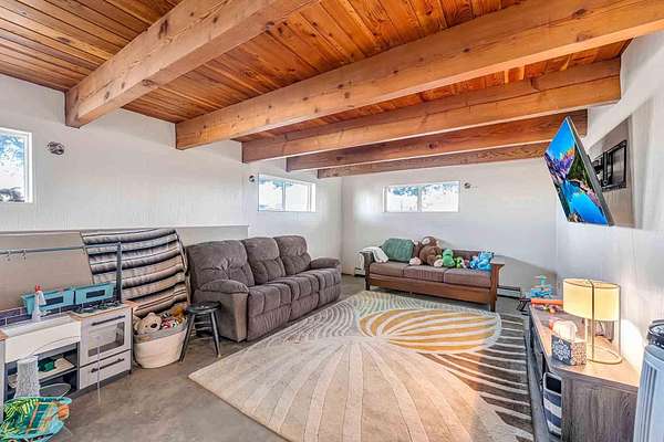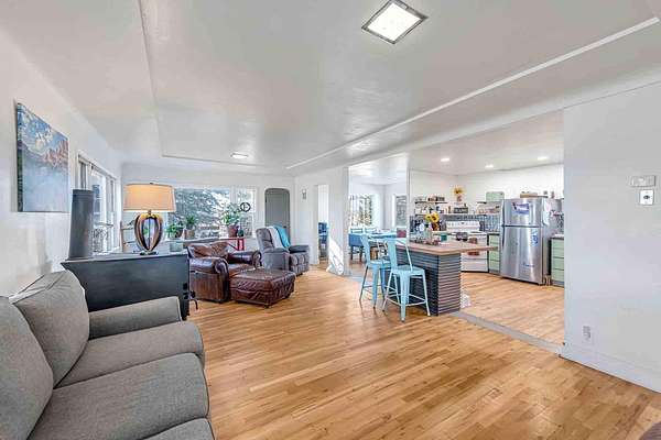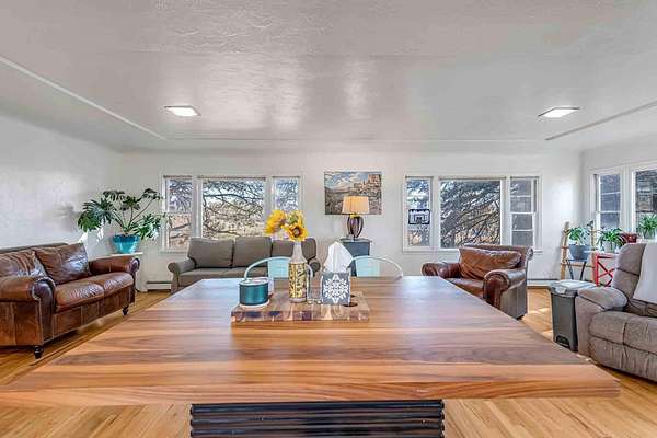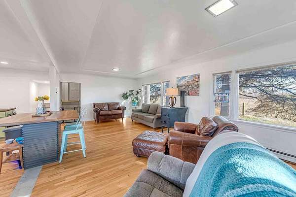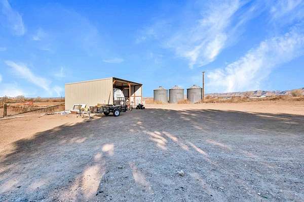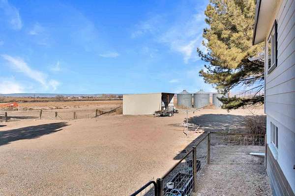Built in 1902 this home has undergone several changes/updates. Previous update was in 1972 and most recent in 2025! Vintage with Farmhouse/Industrial/Modern feel. Concrete countertops, floating shelves, modern kitchen island with butcher block. Amazing what removing the wall between the kitchen and living area did for the floorplan! More natural light, more views and more of an open feel. The main level consists of the kitchen, dining room as well as the living room. Upper level with primary bedroom, 2 guest bedrooms and bathroom. Lower level features, the 4th bedroom, and family room with beautiful wood beams and ceiling along with concrete floors. An additional bathroom plus laundry room complete the lower level. Updated electrical, plumbing and fixtures, interior paint, new deck as well as a Navien boiler/hot water heater are just a few of the updates. All of this situated on an elevated building site with mature trees, 360 degree views and privacy. Detached carport and 3 grain bins for extra storage or fun projects. 4.52 acres with 5 shares of irrigation water and NO HOA!