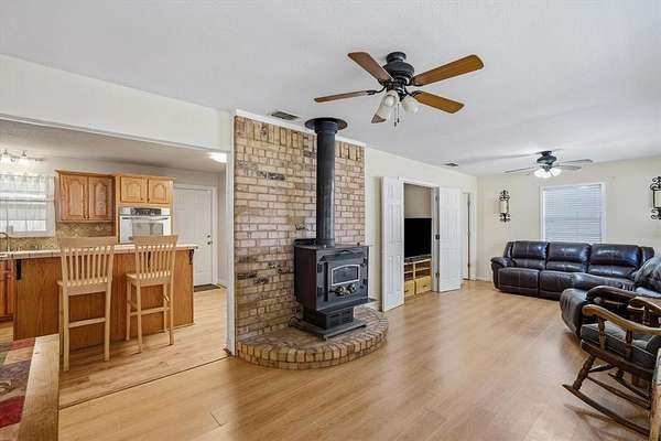 Country comfort on 1.6 peaceful acres in Fruitvale, this charming 3 bedroom, 3 bath home offers space and flexibility. Inside, you'll find great sized rooms throughout, a designated dining area, and a cozy wood burning stove that anchors the living space. One bedroom features an additional bonus area perfect for a home office, playroom, nursery, or sitting area. For peace of mind, the home is equipped with a Generac generator to power the home during outages. Step outside to enjoy the covered back porch, ideal for relaxing or easily converting to a screened in retreat. The property is well equipped with a barn-shed, shop with an overhang for tractor or equipment storage, an additional storage building, and two carports plenty of room for hobbies, tools, and toys. Enjoy the freedom of country living with options for extra acreage available, all while being conveniently located.