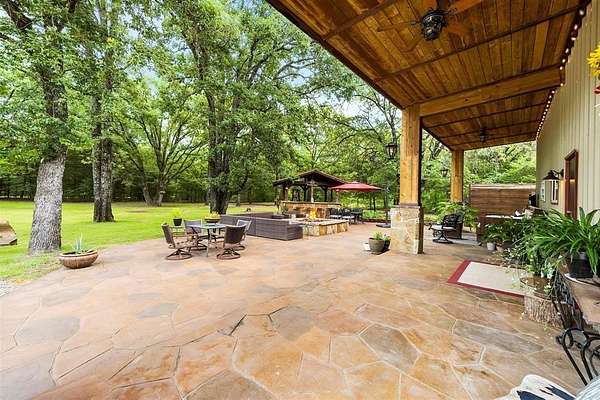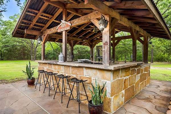Escape to the peaceful beauty of East Texas with this stunning private estate that blends natural serenity with elegant outdoor living. Set on 62.10 lush acres, this unique property is ideal for those seeking a full-time retreat, multi-generational living, or income-producing opportunities. Enjoy evenings around the custom stone fire pit, relax beneath the shade of mature oak trees, and host unforgettable gatherings at the fully equipped covered outdoor bar, all set against a tranquil wooded backdrop. The expansive barndominium offers endless possibilities: primary residence, guest quarters, event space, or short-term rental. French doors, rustic beams, and a covered patio space create charm and function. Meander down peaceful, tree-lined paths and explore the land by ATV, horseback, or on foot. The property is a haven for wildlife, nature lovers, and outdoor enthusiasts. Multiple outbuildings including a charming cabin-style structure, picnic areas, and ample space for RVs equipped with 2-30 amp & 2-50 amp plugs or gatherings make this property ideal for hosting family, friends, or events. This is more than a property—it’s a lifestyle. Every detail, from the custom stonework to the peaceful privacy of the forest-lined drive, invites you to slow down and savor the moment. Land was originally platted out to be a neighborhood so whether you envision a subdivision, family compound, a hunting getaway, or an event venue—this estate is a canvas for your dreams. Tucked away in Fruitvale, TX, just a short drive from Canton and under 90 minutes from Dallas, you'll enjoy the perfect mix of country charm and convenient access.
