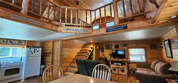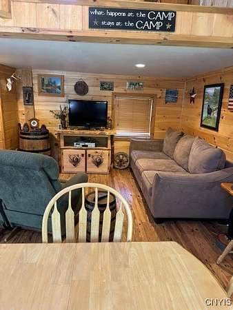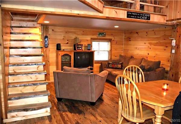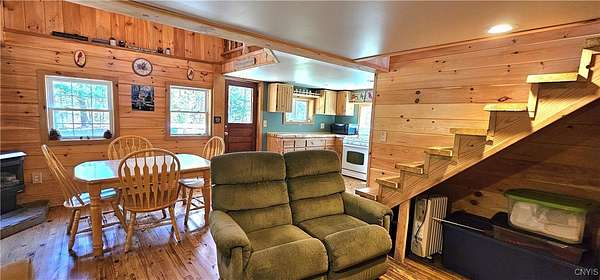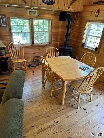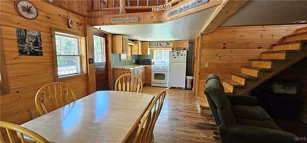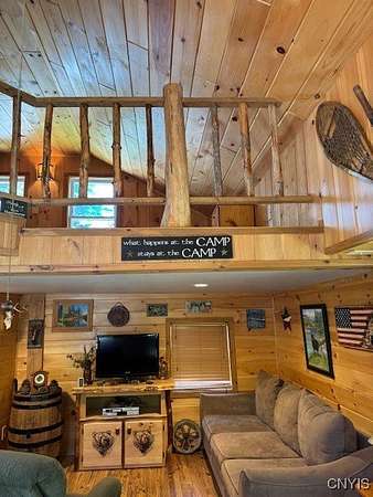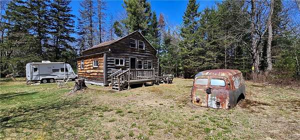 Charming Cabin on a Seasonal Private Dead-End Road! Nestled near state land, this cozy cottage is a perfect retreat for outdoor enthusiasts, including hunters and snowmobilers. Featuring one bedroom and a loft that accommodates two additional beds, along with dressers and ample storage, this cabin is designed for comfort. Stay warm with a propane fireplace stove and enjoy the convenience of electric power. Rainwater collection and septic services are provided through adjacent structures, ensuring privacy and potential storage options. A charming old car on-site adds character and serves as a fun spot for visitors to sign their names, making it a unique focal point of your retreat. Explore nearby attractions such as Snowmobile trails, BREIA Trails, Kayuta Lake, Brantingham Lake, Pixley Falls, and the Black River, making this unique spot your go-to destination for adventure. Embrace the outdoors in your own charming cabin retreat!